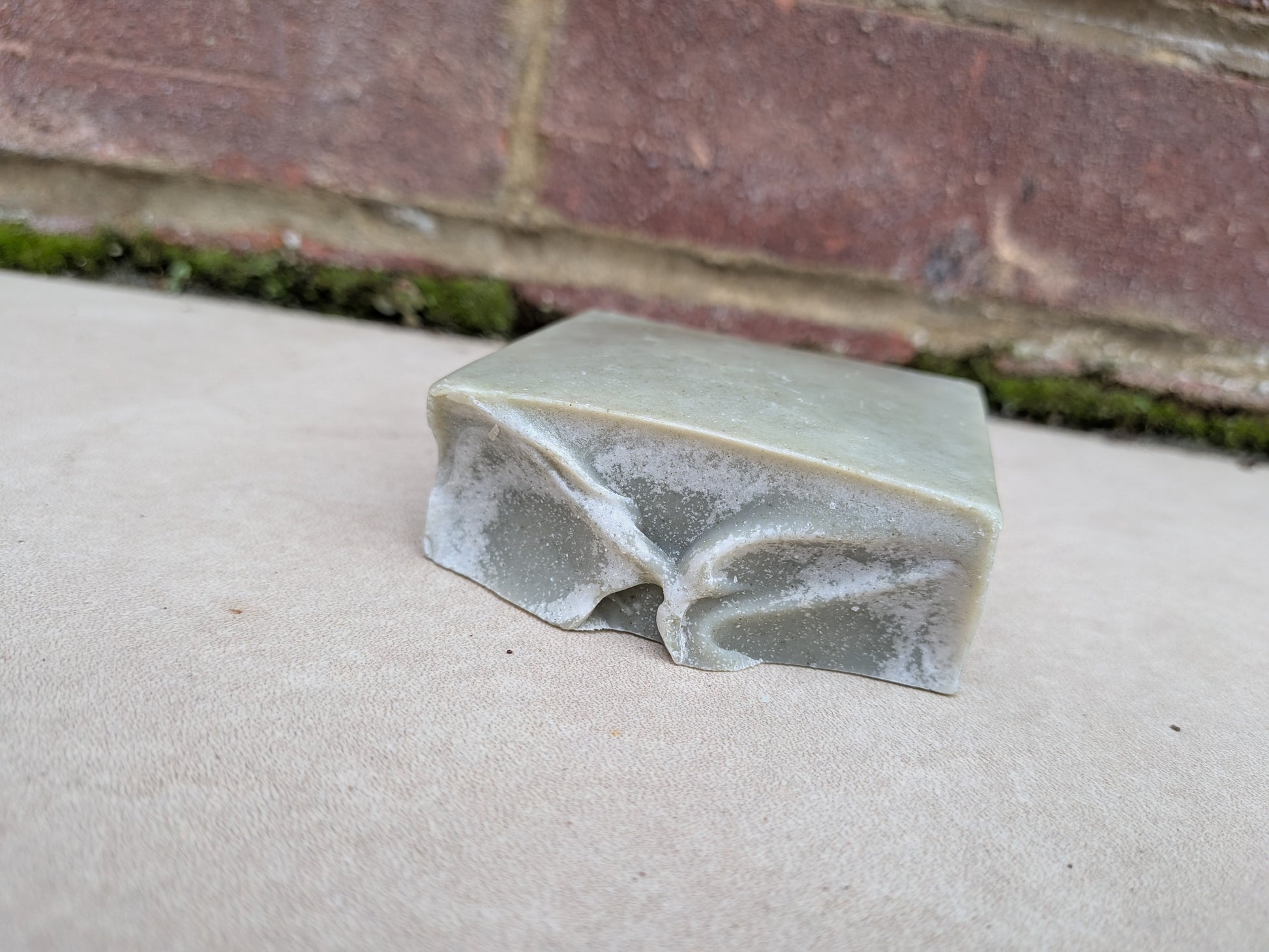 Ingredients: Sodium Olivate (Olive Oil), Sodium Cocoate (Coconut Oil), Pumice (The Grit), Sodium Sheabutterate (Shea Butter), Melaleuca Alternifolia Leaf Oil (Tea Tree), Eucalyptus Globulus Leaf Oil (Eucalyptus), Spirulina Platensis Powder (Natural Colour).